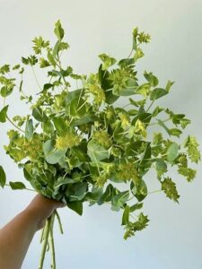 Bouquet makers rejoice! Chartreuse green foliage with yellow/lime green flowers on top of wiry stems. Excellent as a sparkly filler and also as a dried flower. Harvest these when the flowers are fully open. They also can take a light frost and are very self sufficient.