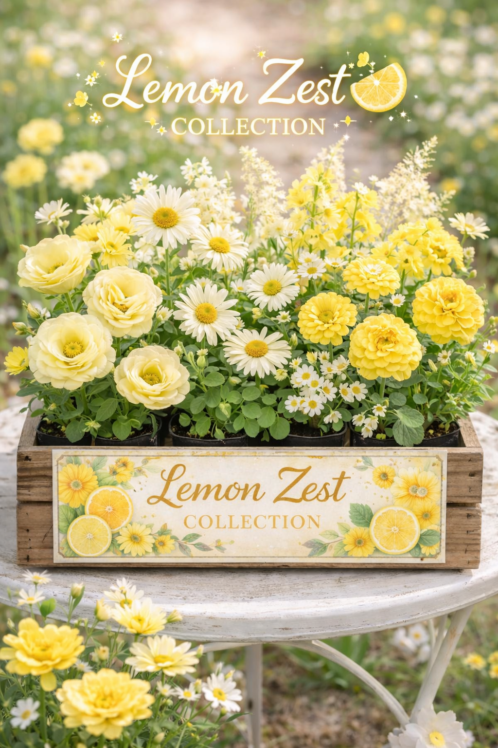 Sunflower Sonja (3), Amaranth Green Cascade (2), Zinnia Isabellina (3), Cosmos Apricot Lemonade (2), Bupleurum (3), Sunflower Gummy Bear (3), Snapdragon Lemon (3) Cosmos Xanthos (3), Lisianthus Gold (3)