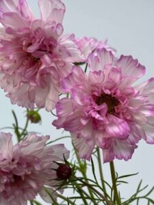 Lush, ruffled, double or semi double flowers in shades from light to dark pink and white. Their charming, airy look is perfect for cutting gardens blowing in the breeze. Provides continuous blooms all season with super long stems – best and most prolific if you consistently dead head the spent flowers. Recommendation: pinch when they are young for bushier growth.